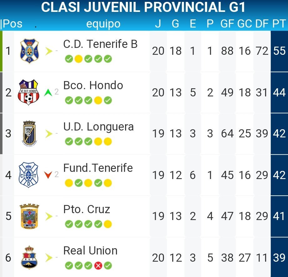 En el plato fuerte de la jornada 20 de Juvenil Provincial de Tenerife, el Estadio Olímpico de Los Realejos fue testigo del enfrentamiento entre la U.D. Longuera y el Puerto Cruz. Ambos conjuntos, ávidos de mantenerse en la cima de la clasificación y asegurar un puesto en los ansiados playoffs para la División de Honor, protagonizaron un partido poco vistoso por el número de ocasiones pero sólido en ambas áreas.
